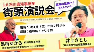 黒梅あきら出発式 2026年2月19日(木)10:30~ JR金沢駅西口(広岡交差点付近)